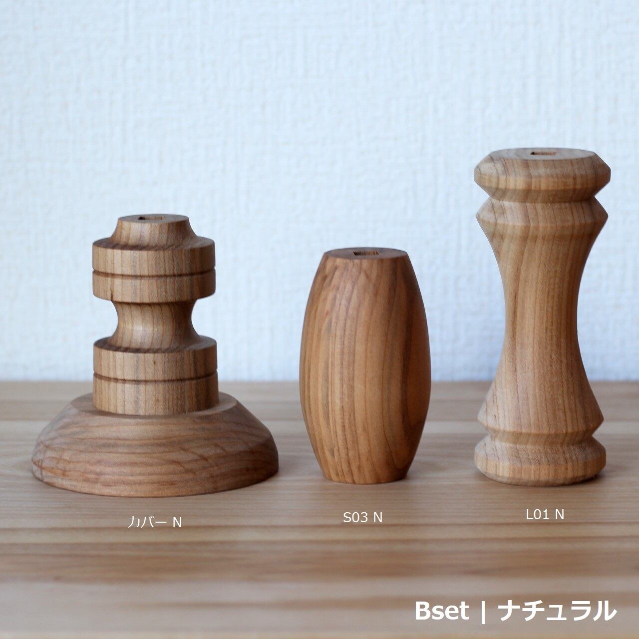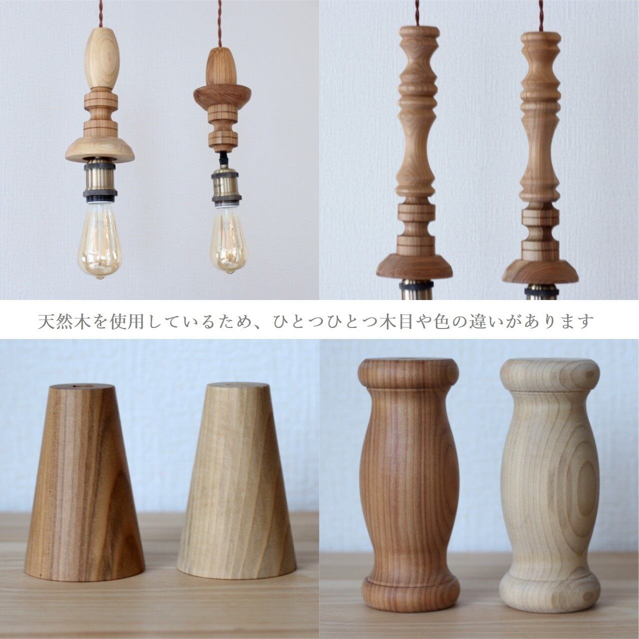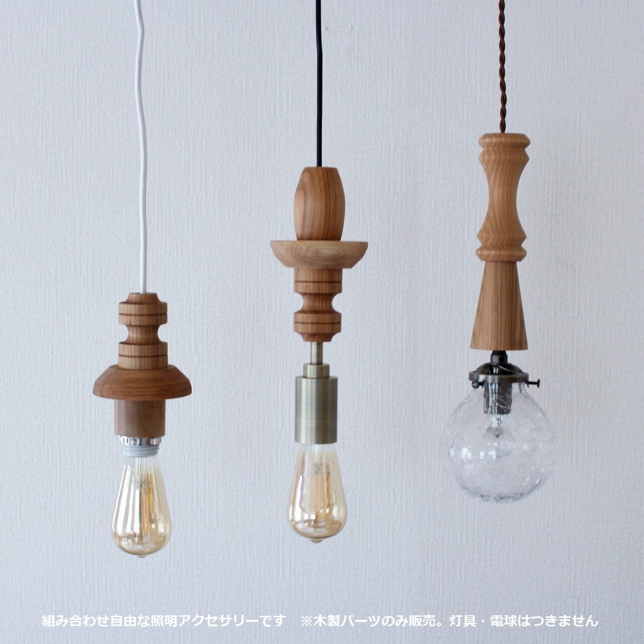 お手持ちのペンダントライト(灯具)のコードに取付が出来る木製の照明アクセサリー3点セットです。