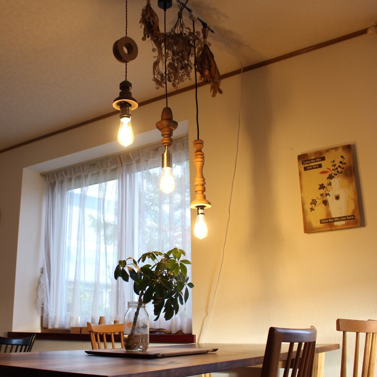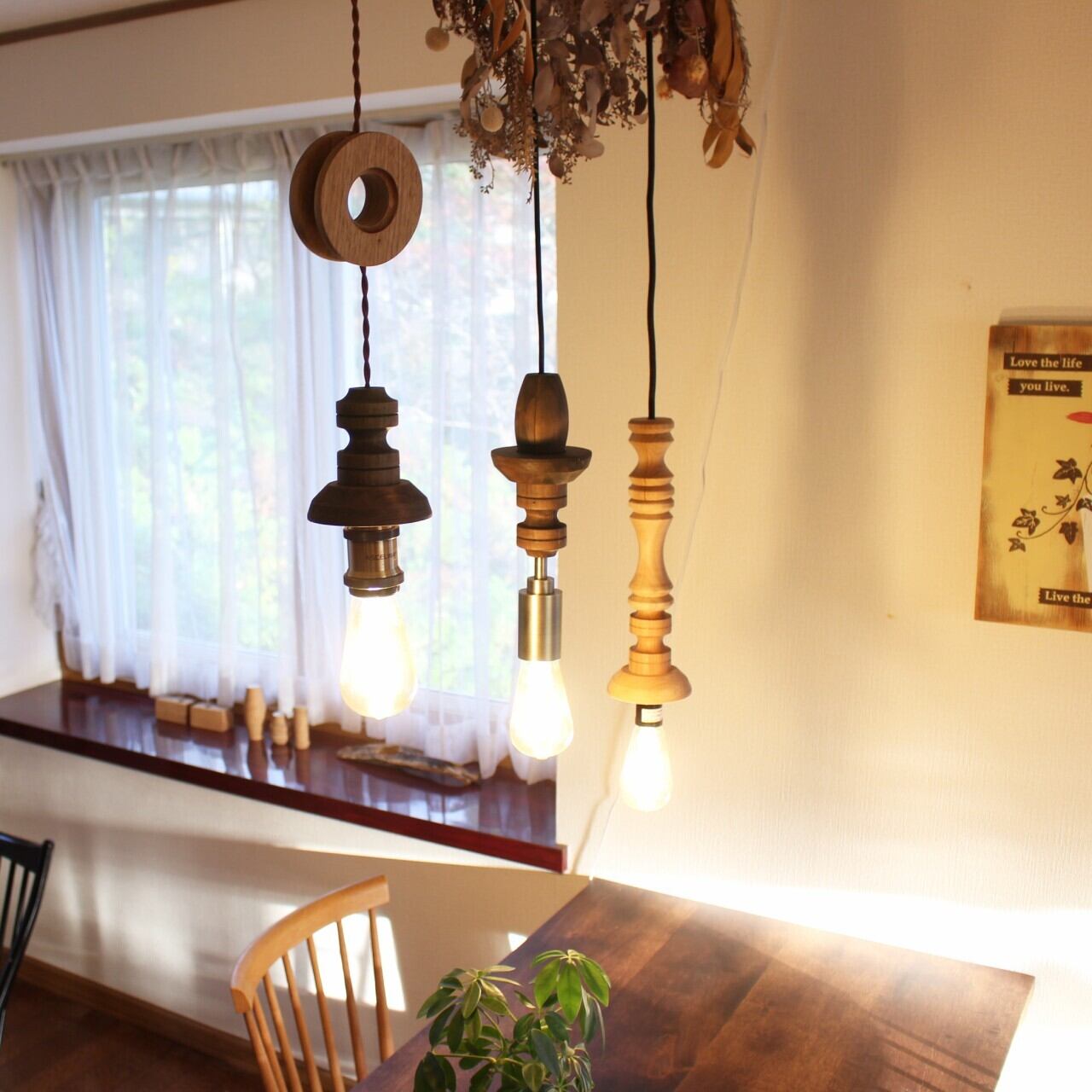 ペンダントライトのコードを巻き取り長さを調節できる木製のコードリールです。
