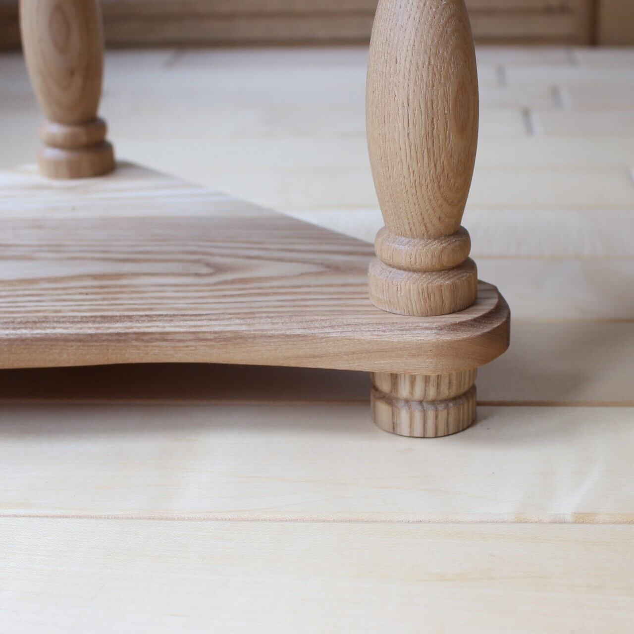 天然無垢材を使用した三角スタンドは、ナチュラルであたたかみのある風合いが特徴です。