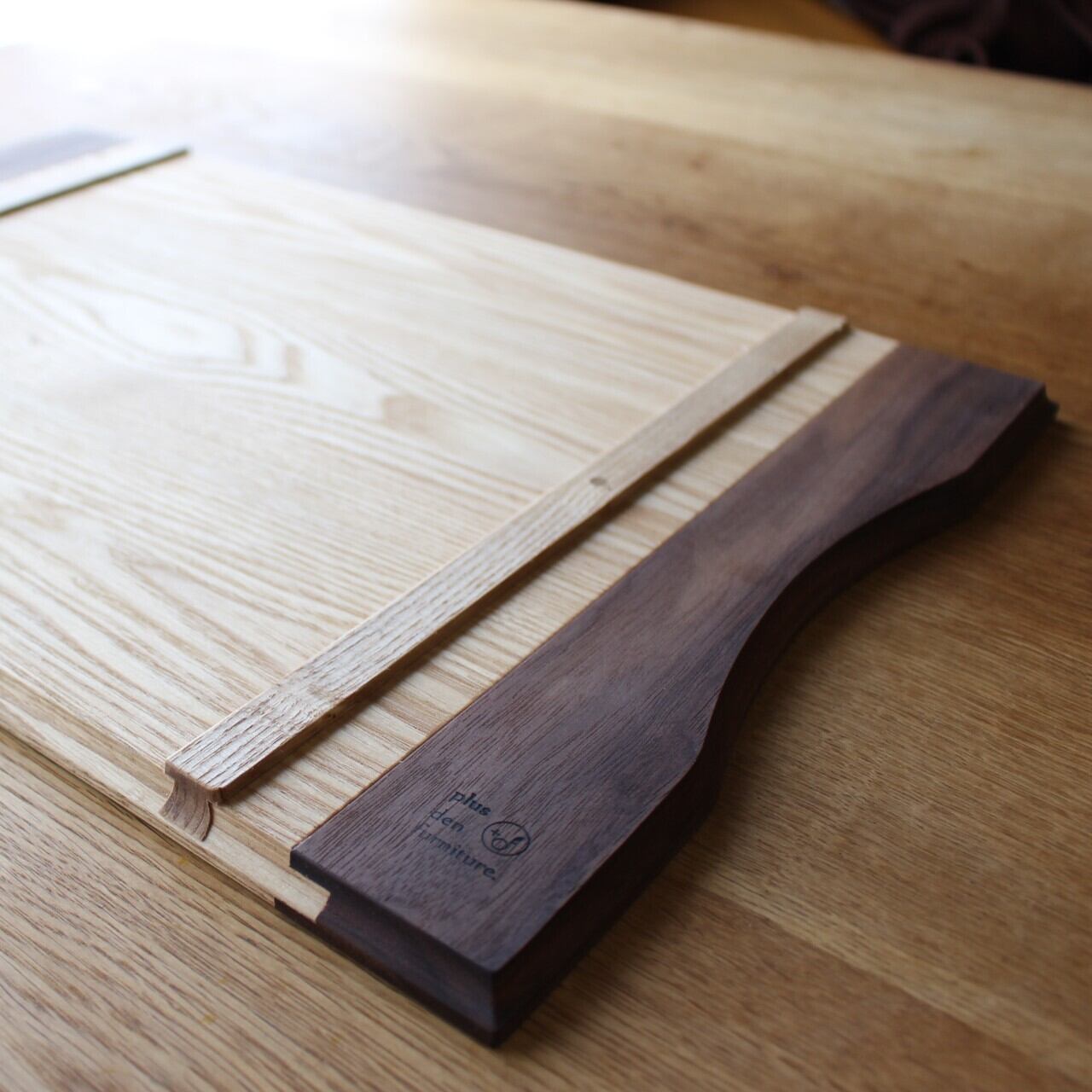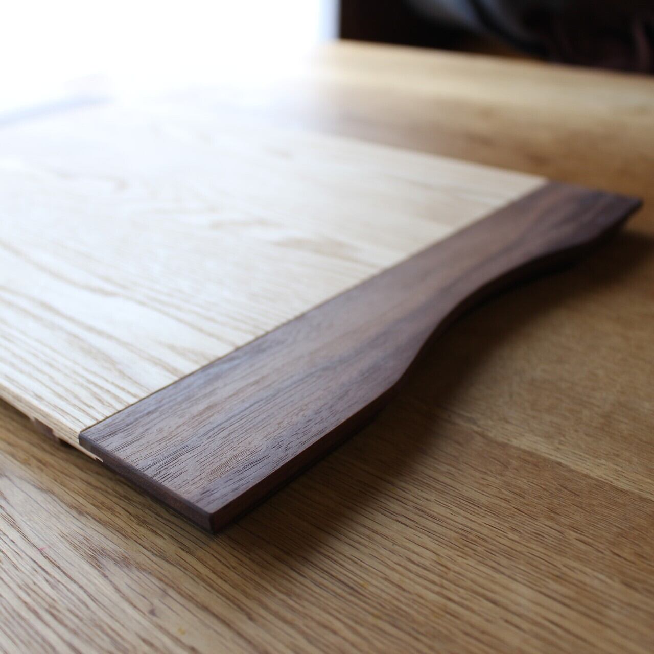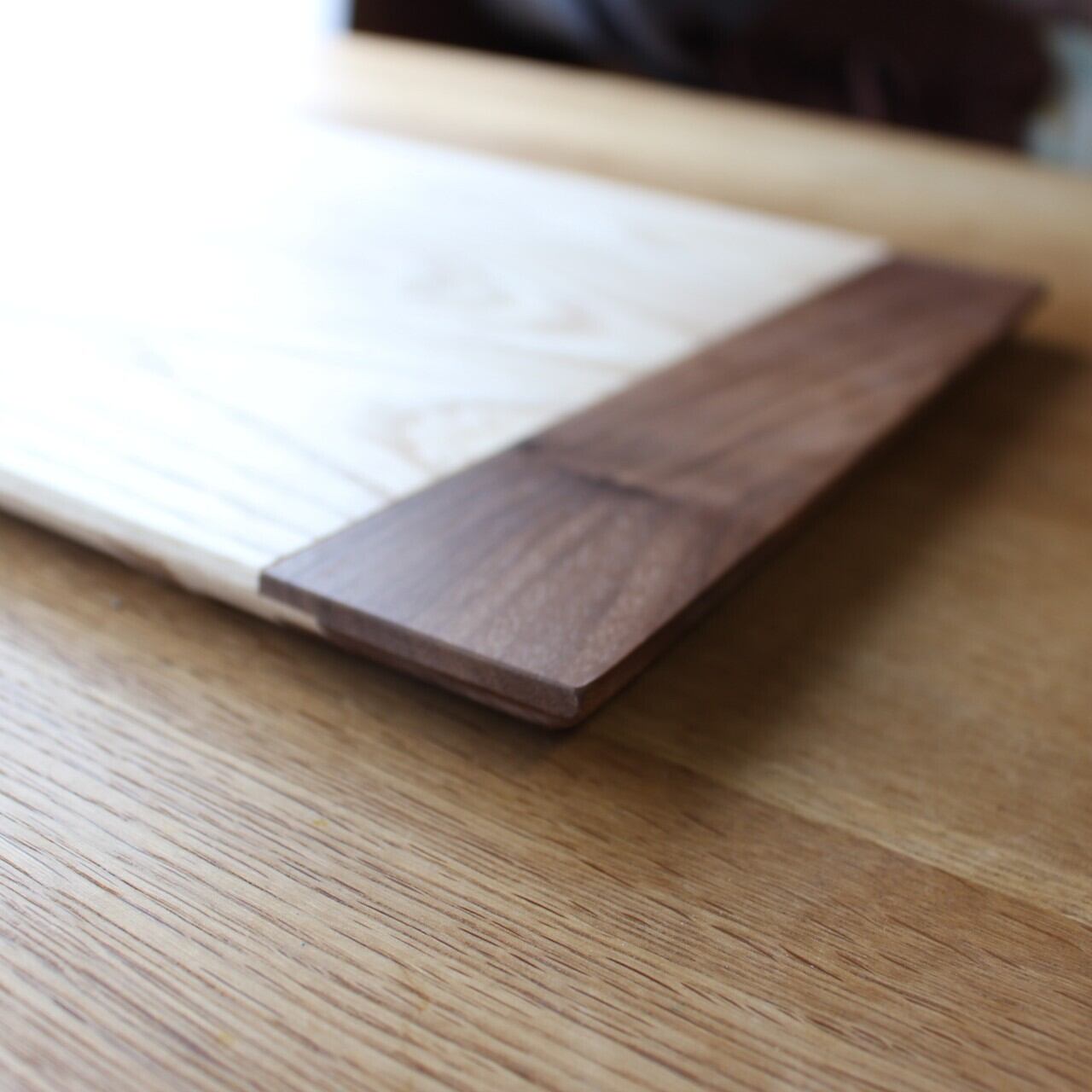 深みあるブラックウォルナットと、やさしいタモの無垢材。