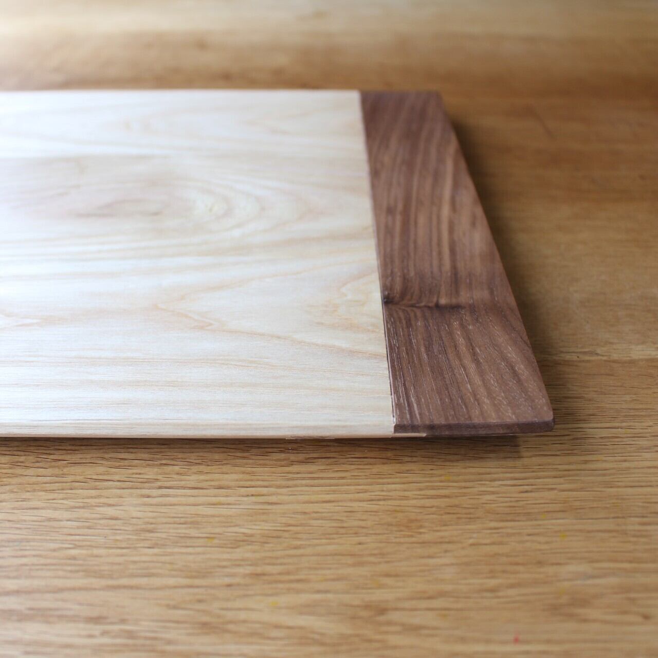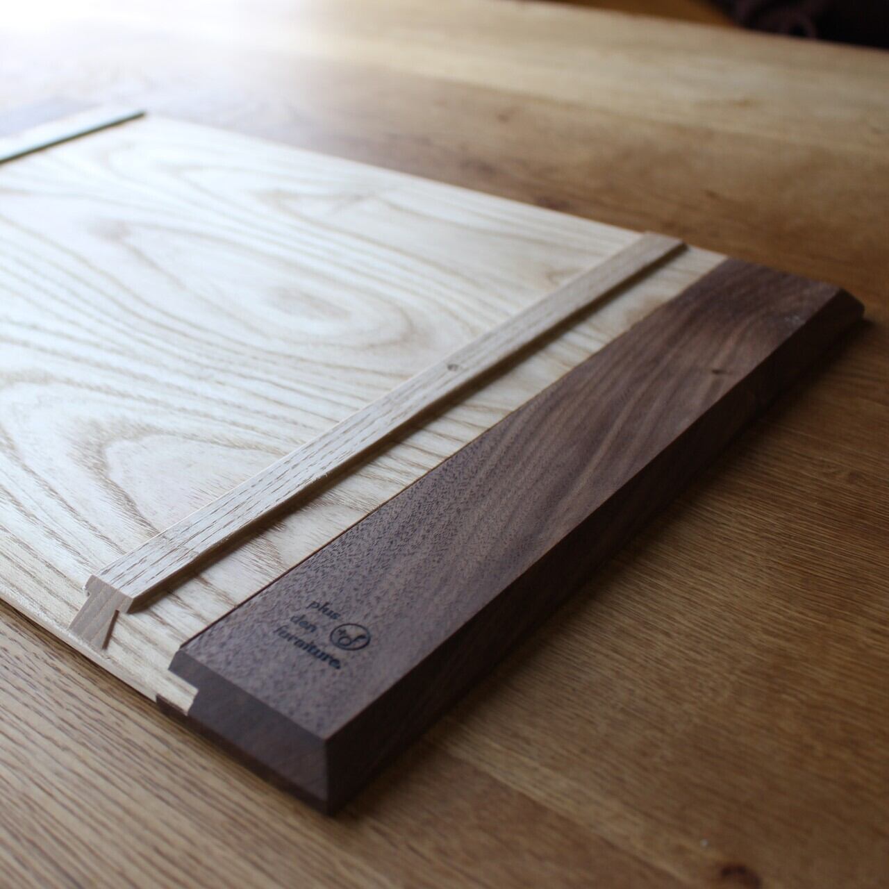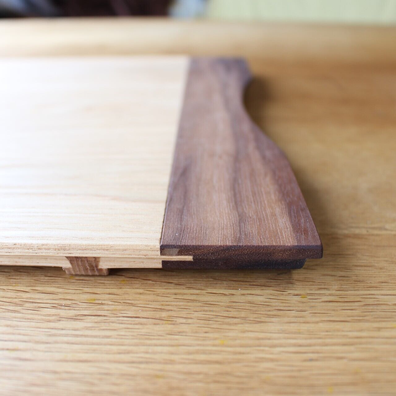 深みあるブラックウォルナットと、やさしいタモの無垢材。