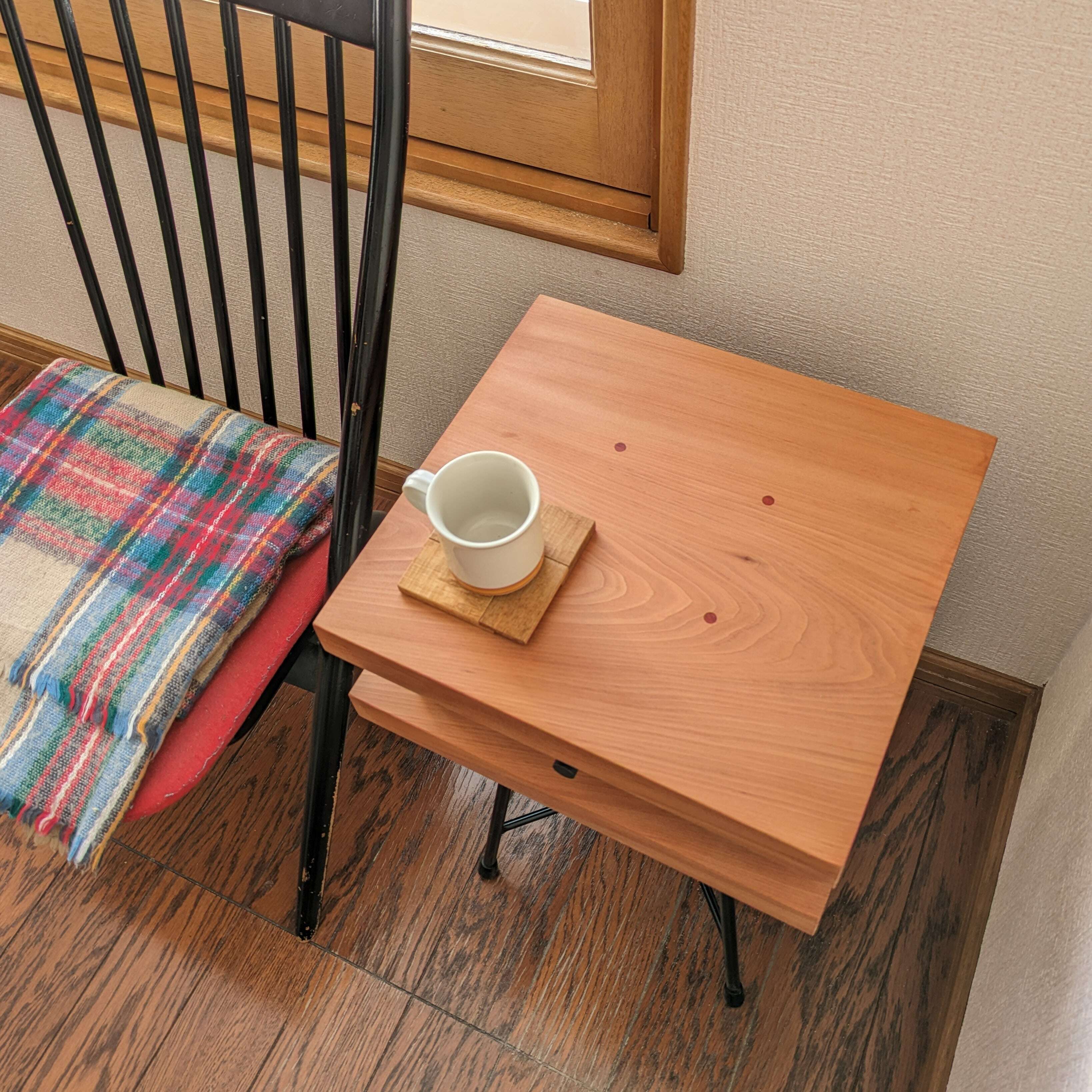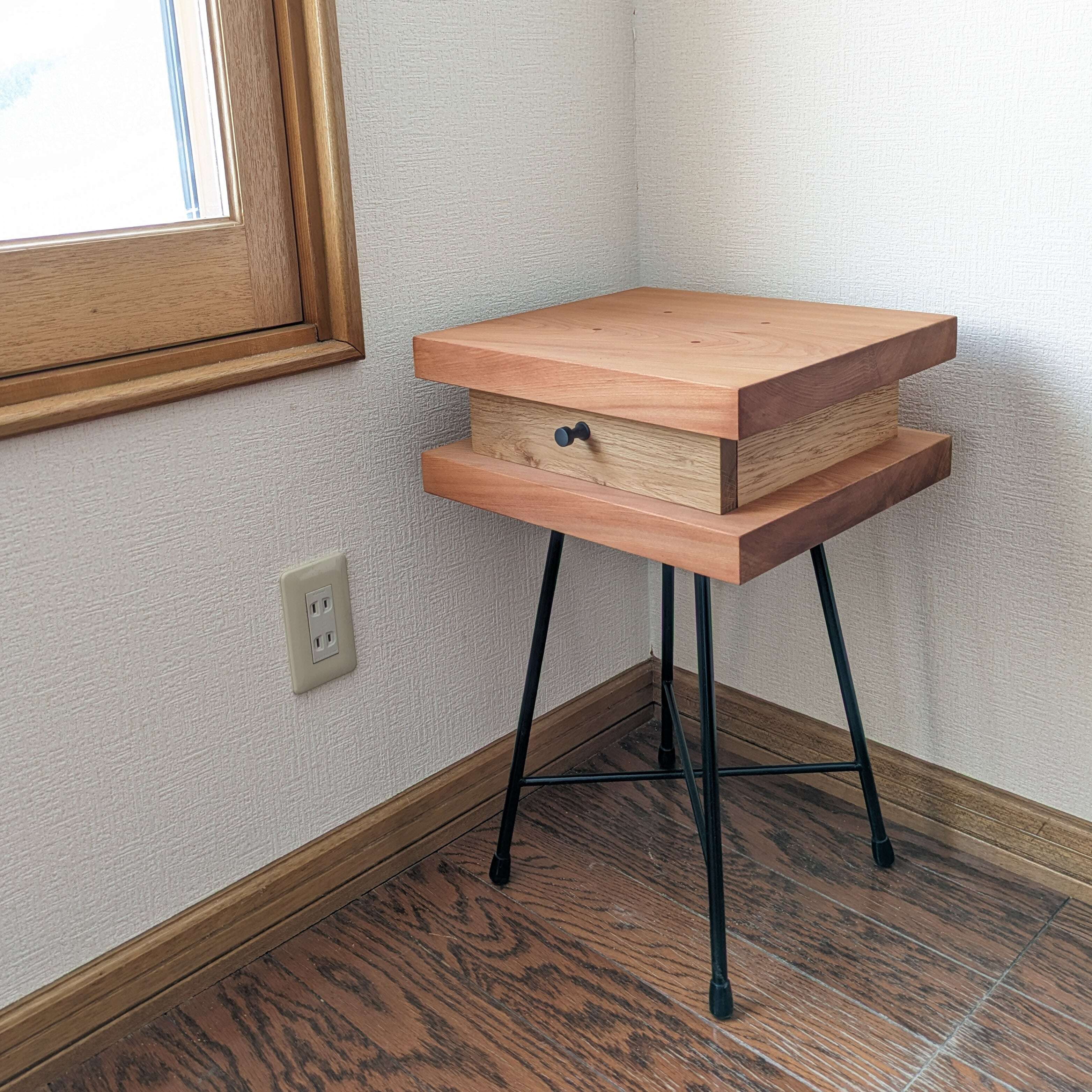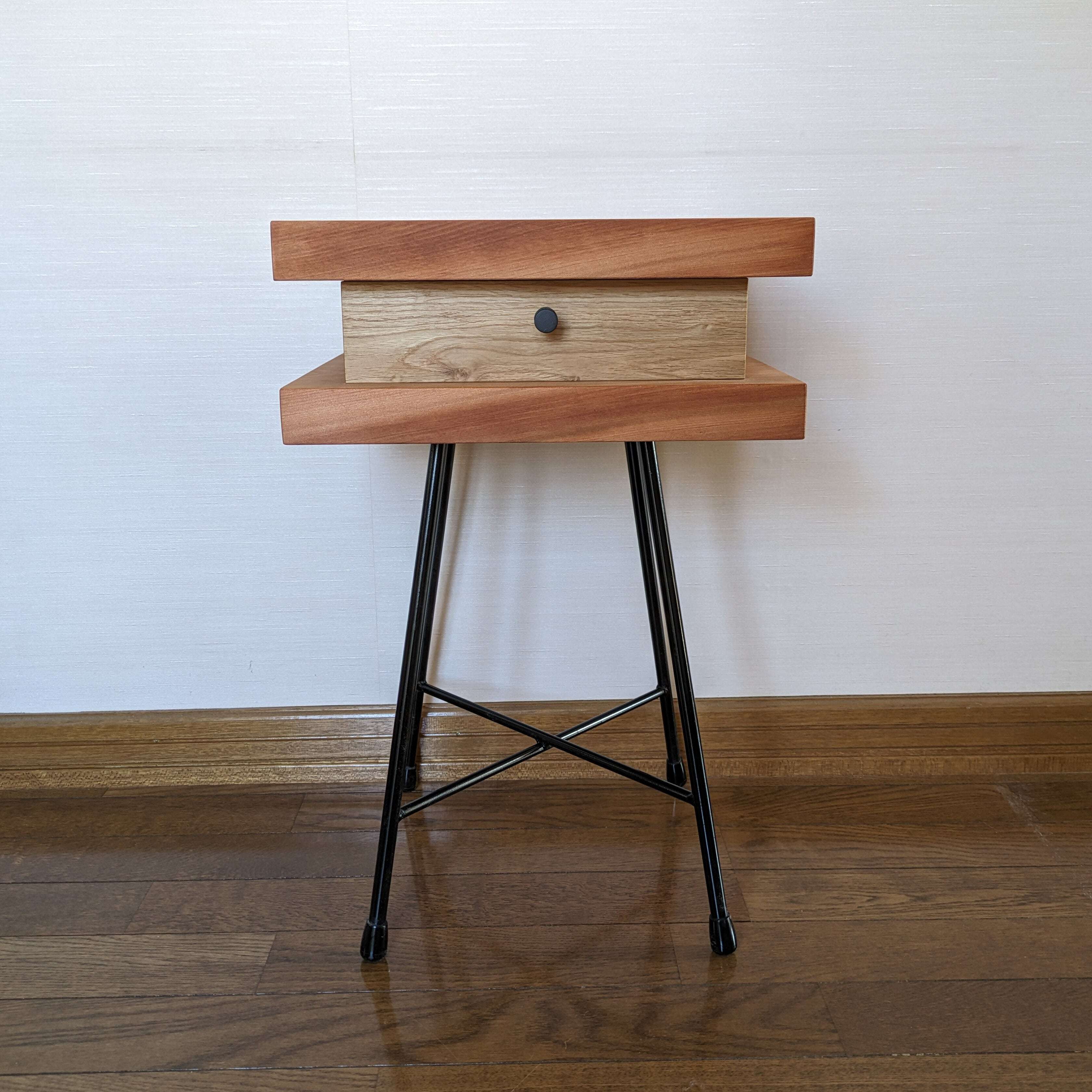 素 材:天板 カツラ (古物 将棋盤)/引出 ナラ/脚 アイアン