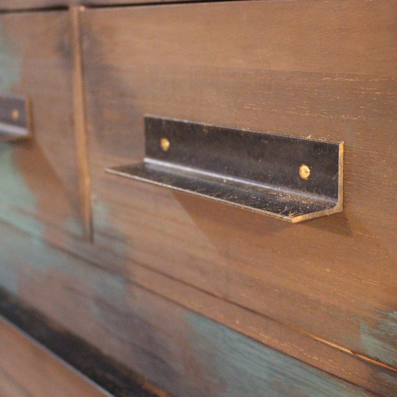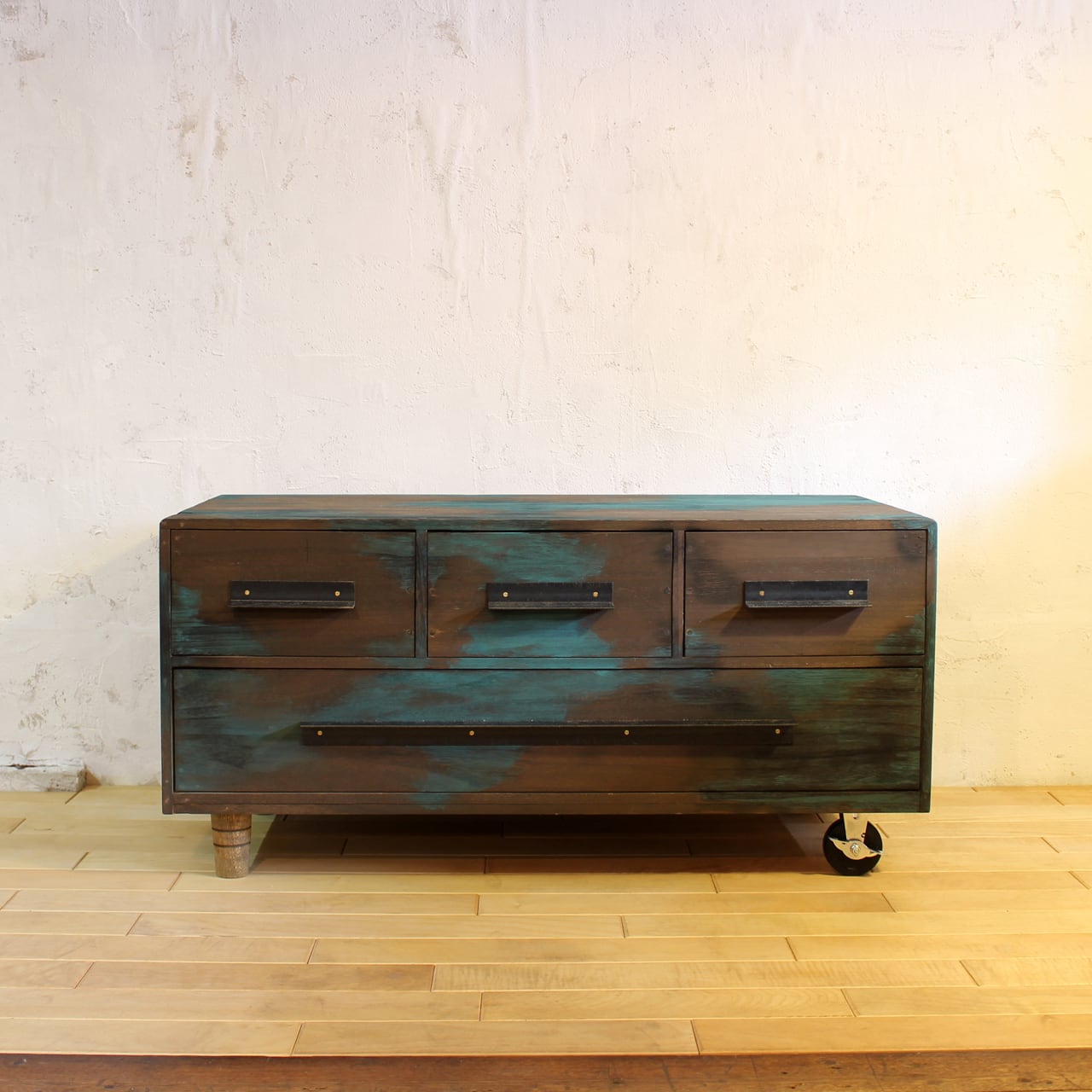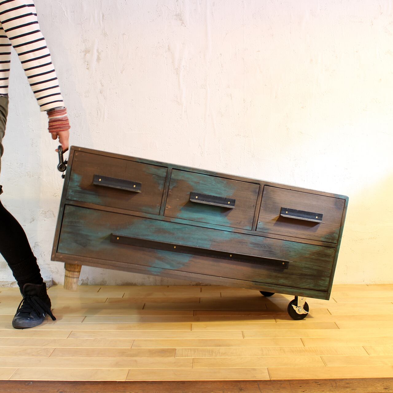 取っ手と持ち手のアイアンがインダストリアル的で家具のアクセントになっています。