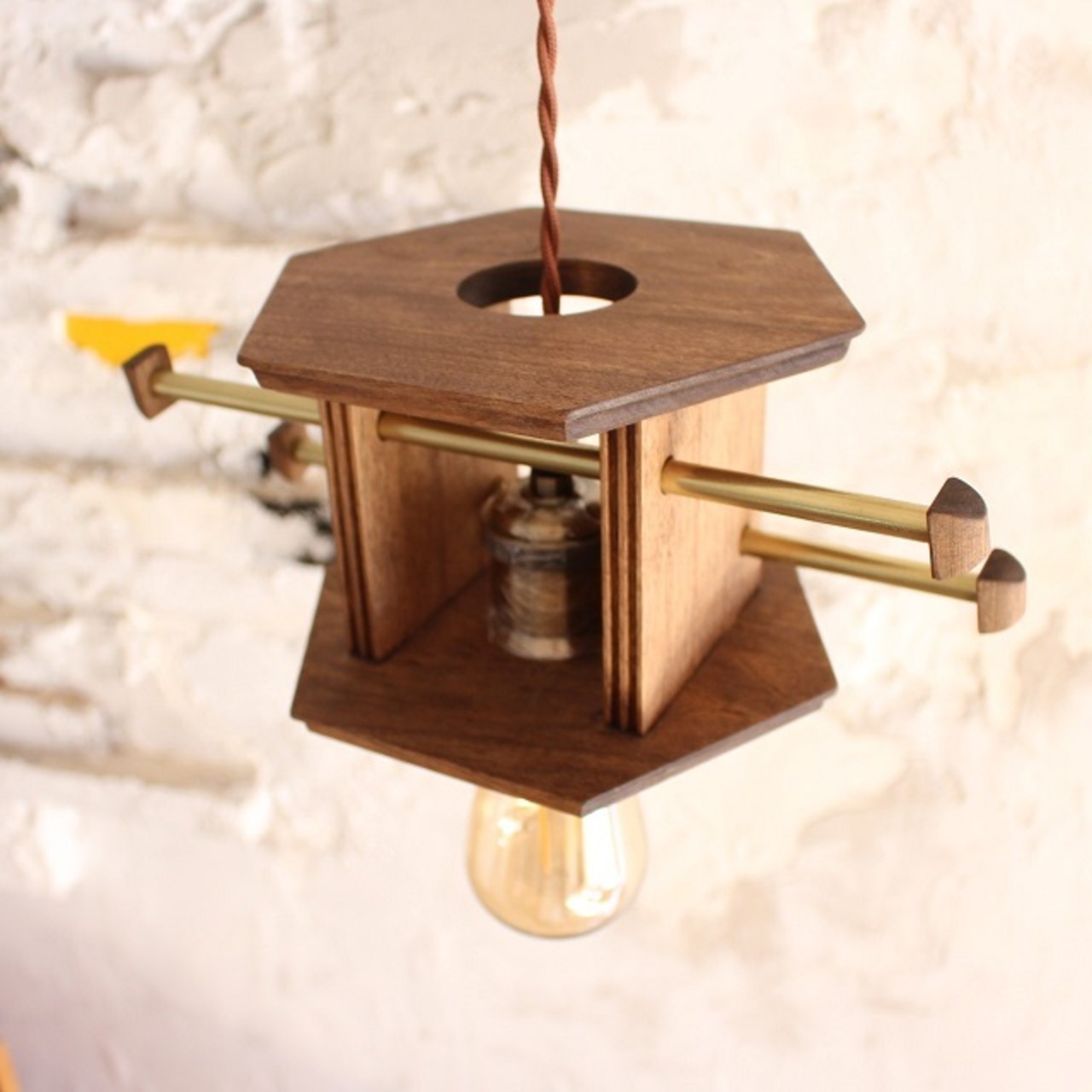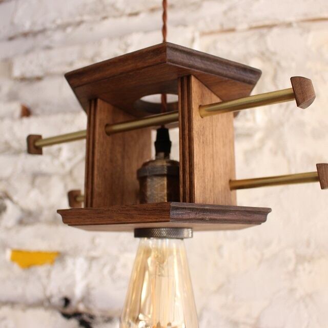洋風の灯篭をイメージしたシェードは、ブラウンの木の風合いとモールの陰影が