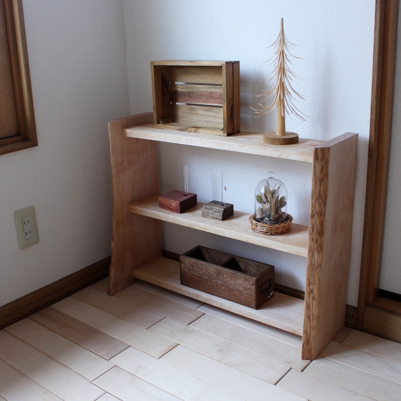 側板に木の耳がついたオープンシェルフです。