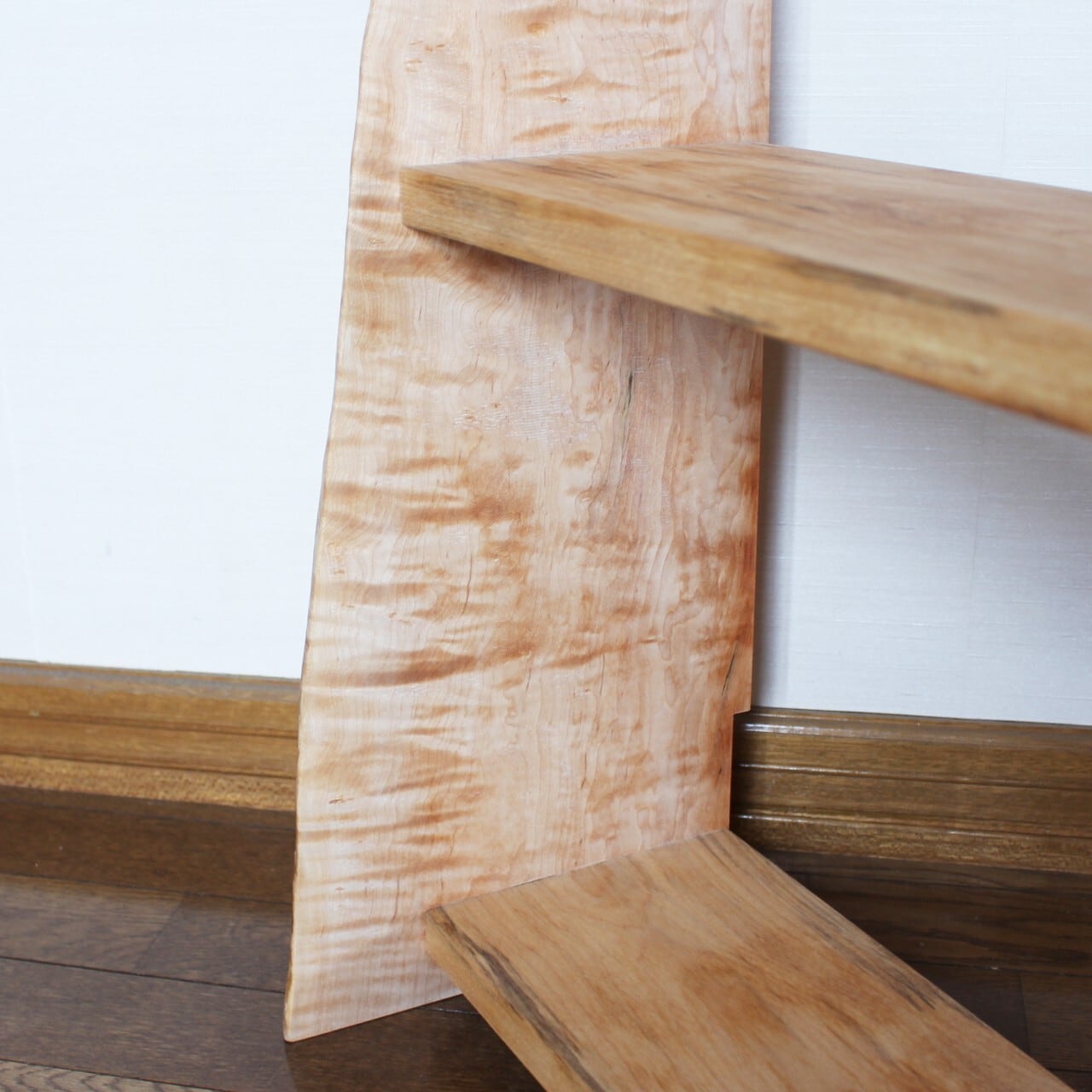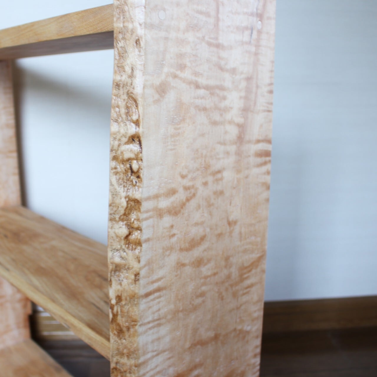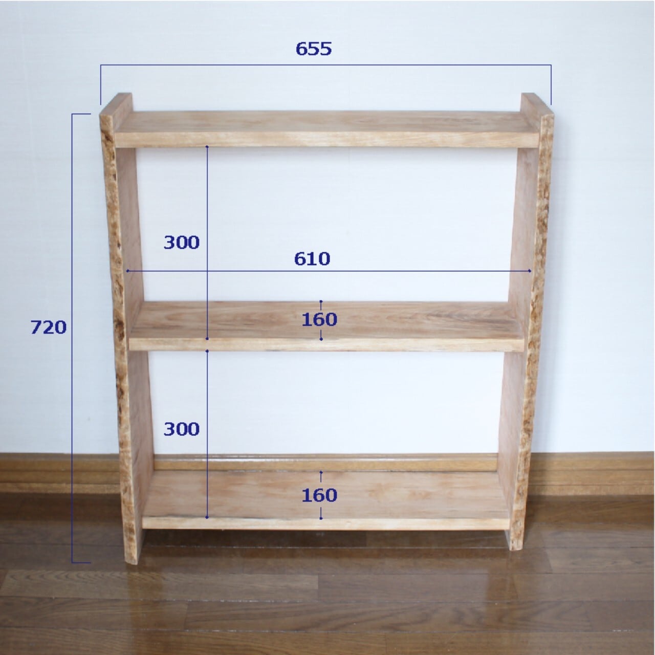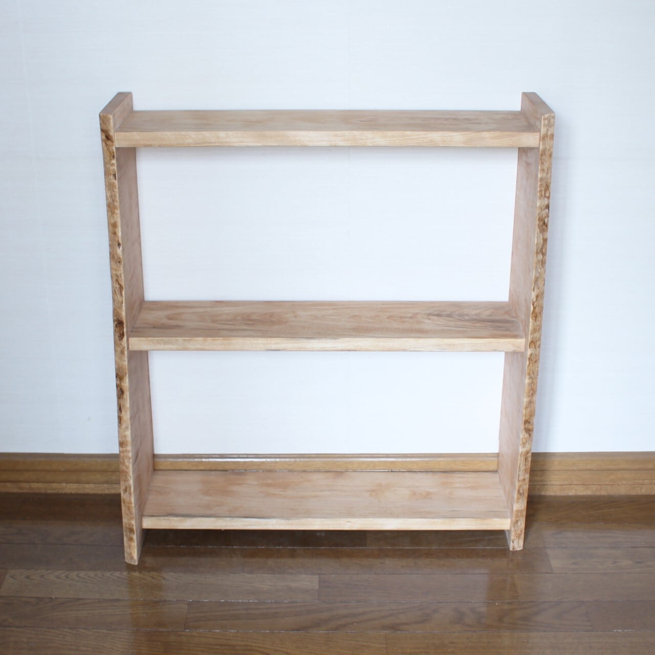無垢の木の自然な木目が楽しめるオープンシェルフです。